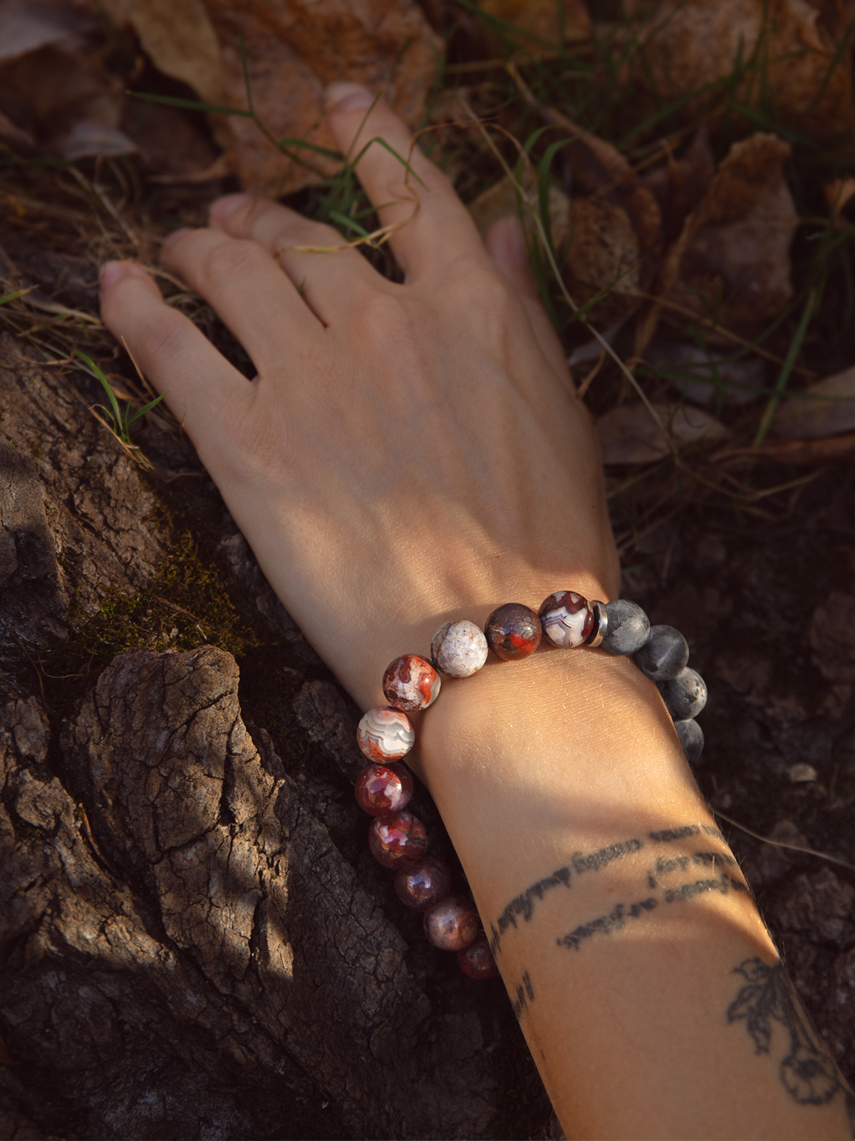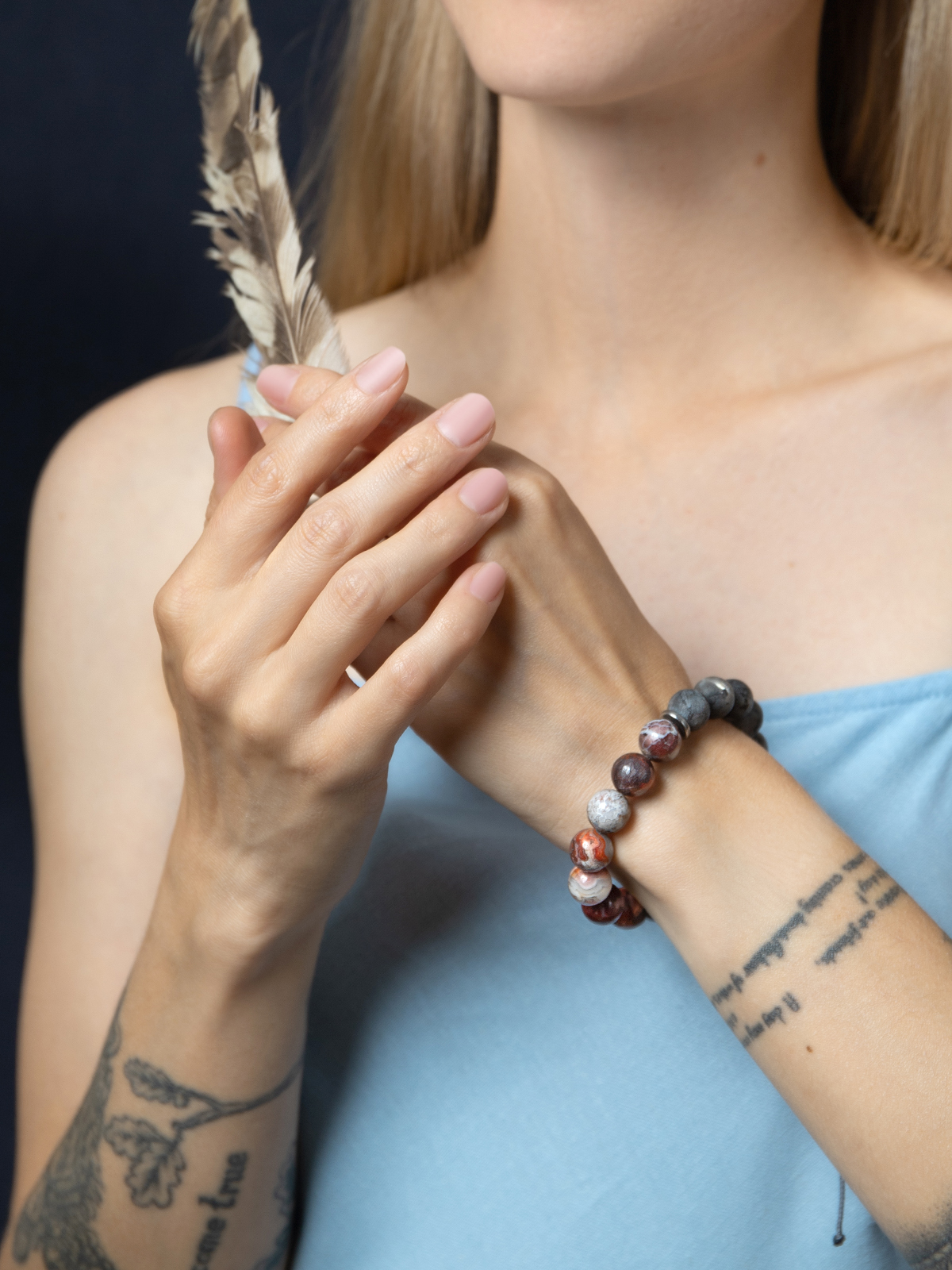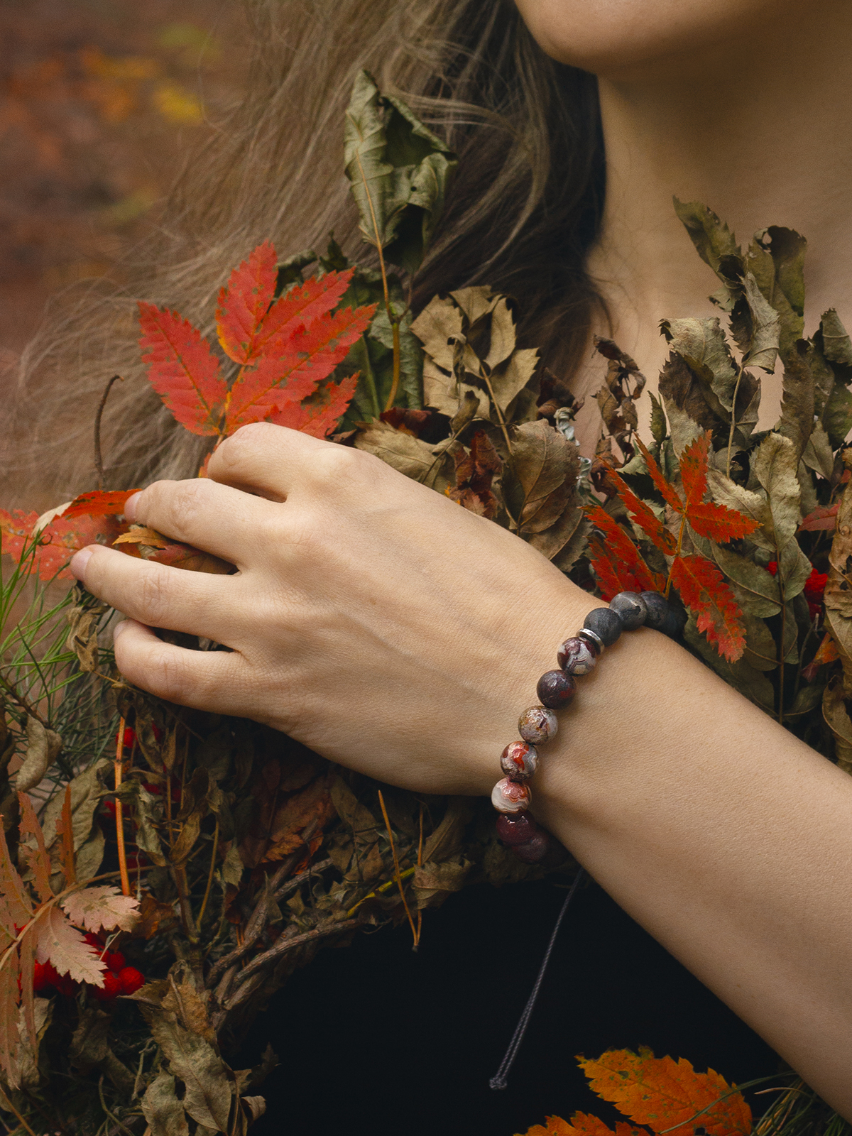 Амаута — браслет из мексиканского агата и чёрного лабрадорита.