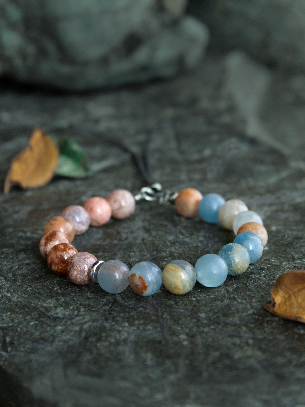 Астхик — браслет из голубого кальцита и цветочного агата.
