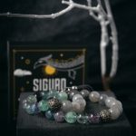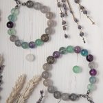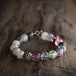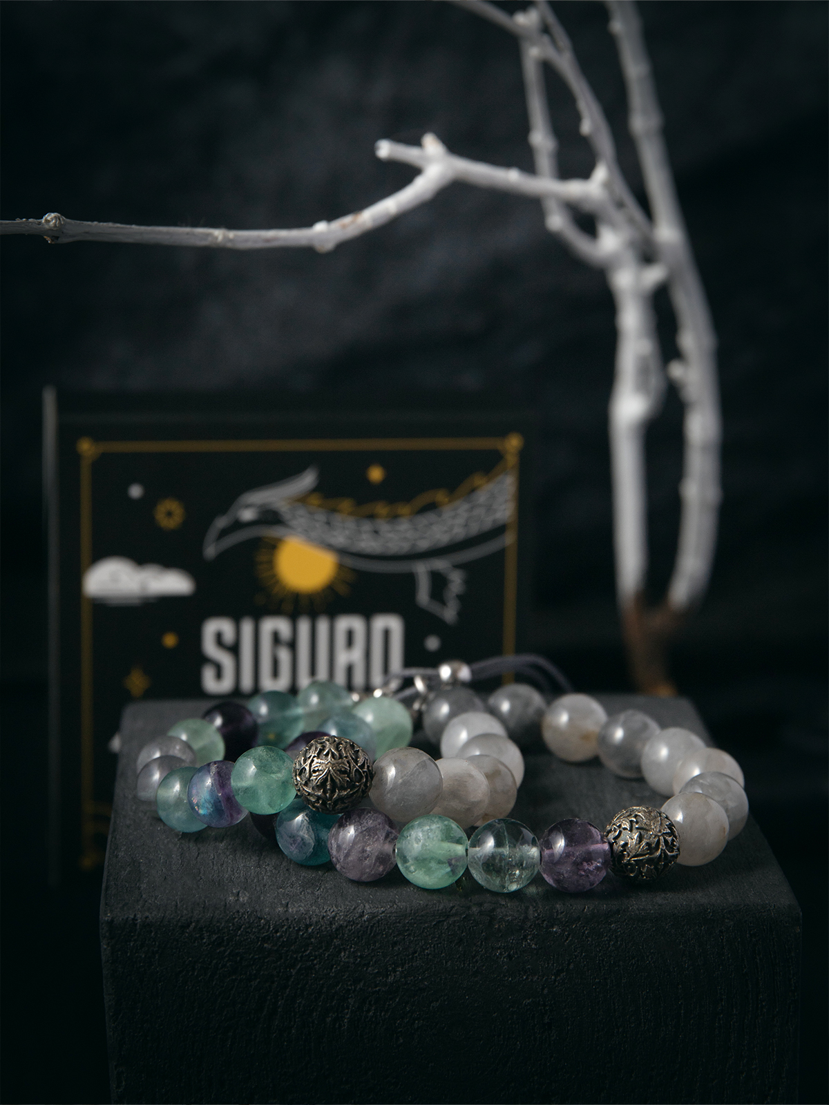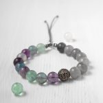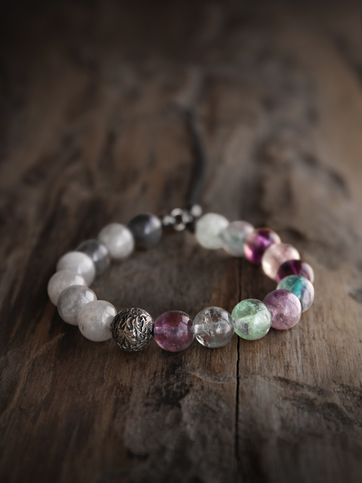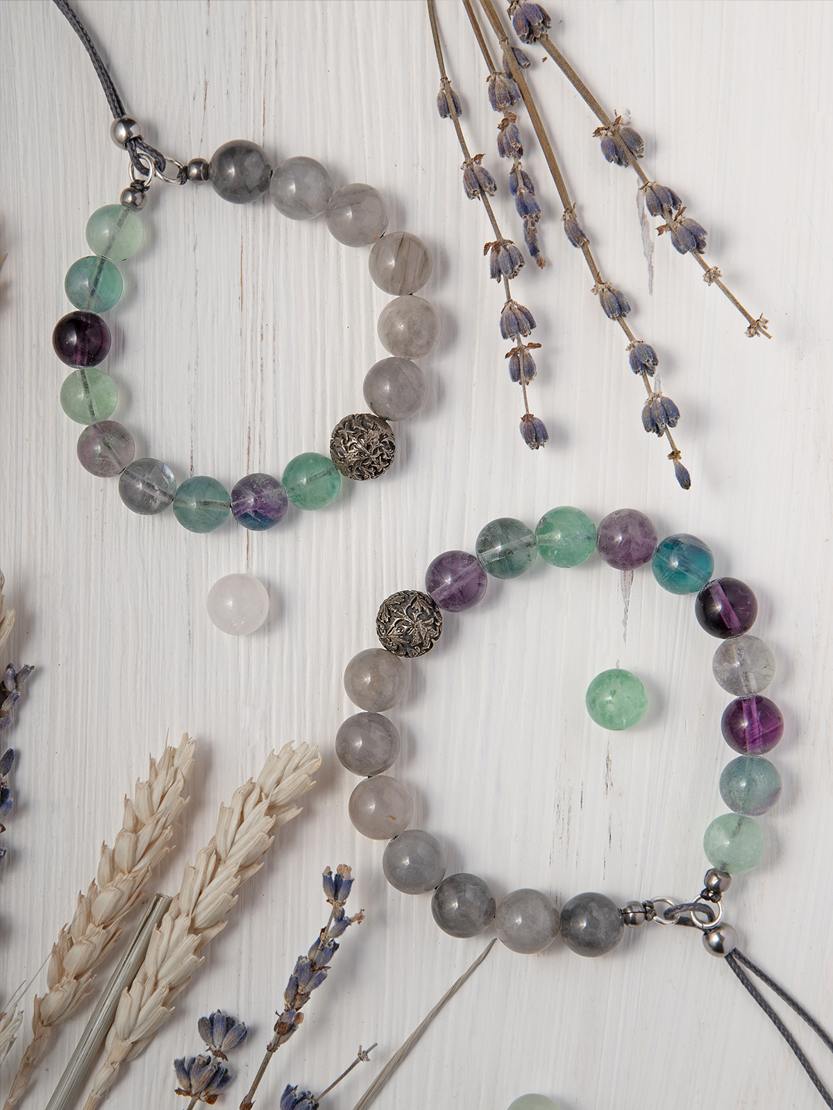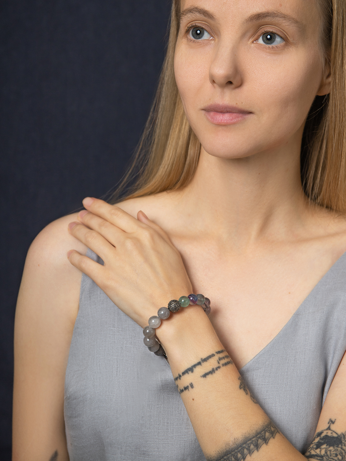 Авен — браслет из облачного кварца и флюорита, с бусиной из нейзильбера.