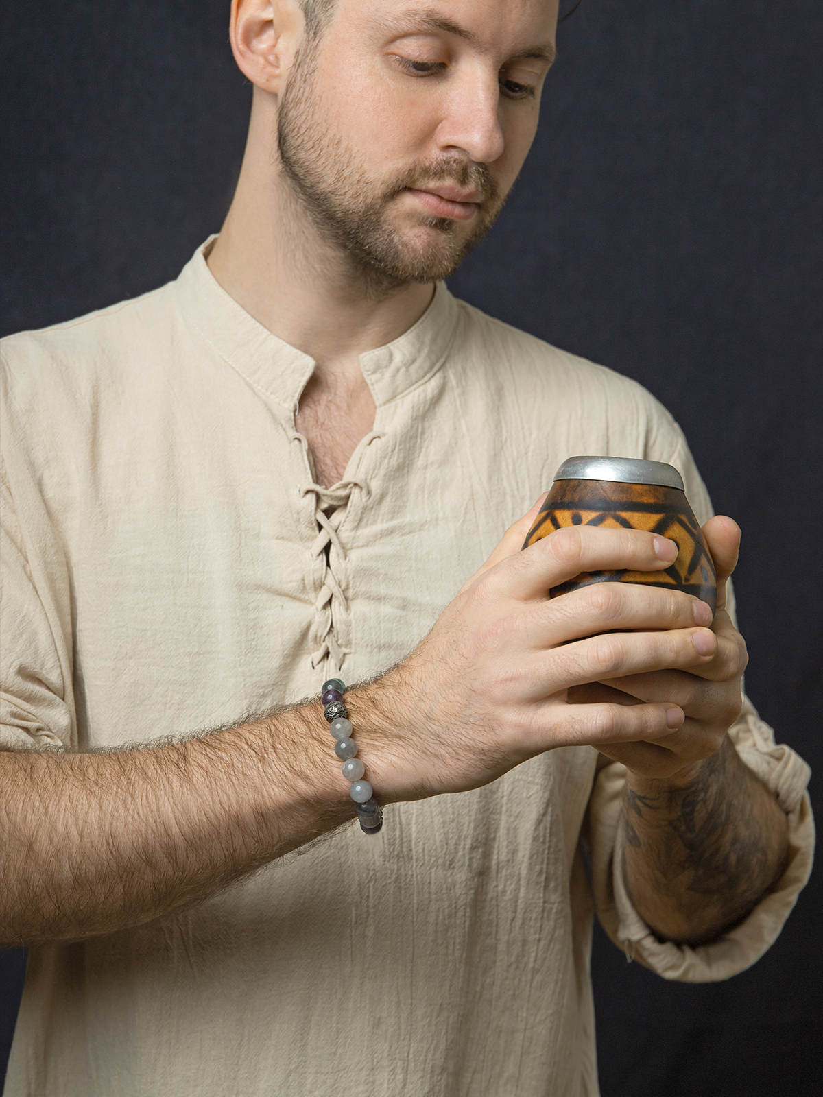 Затяжная регулируемая застежка позволяет гибко подгонять размер браслета под обхват запястья. Чтобы браслет удобно сидел на руке, выберите наиболее подходящий вариант из трех базовых размеров. Цифры соответствуют обхвату запястья в сантиметрах: 15-17,5 см, 18-20,5 см, 21-24 см. Общее количество каменных бусин в размере 15-17,5 - 15 шт., 18-20,5 - 17 шт., 21-24 - 19 шт.