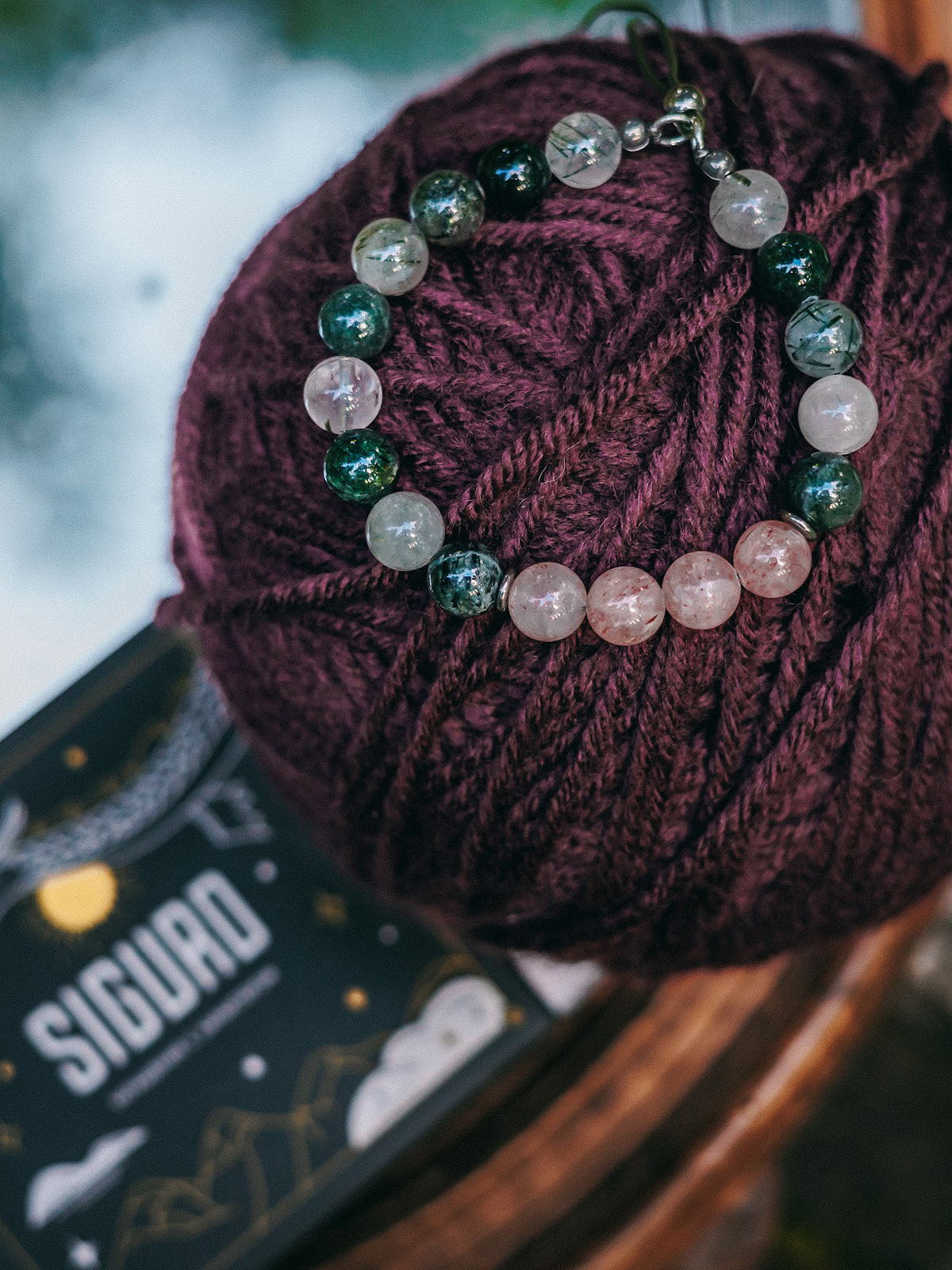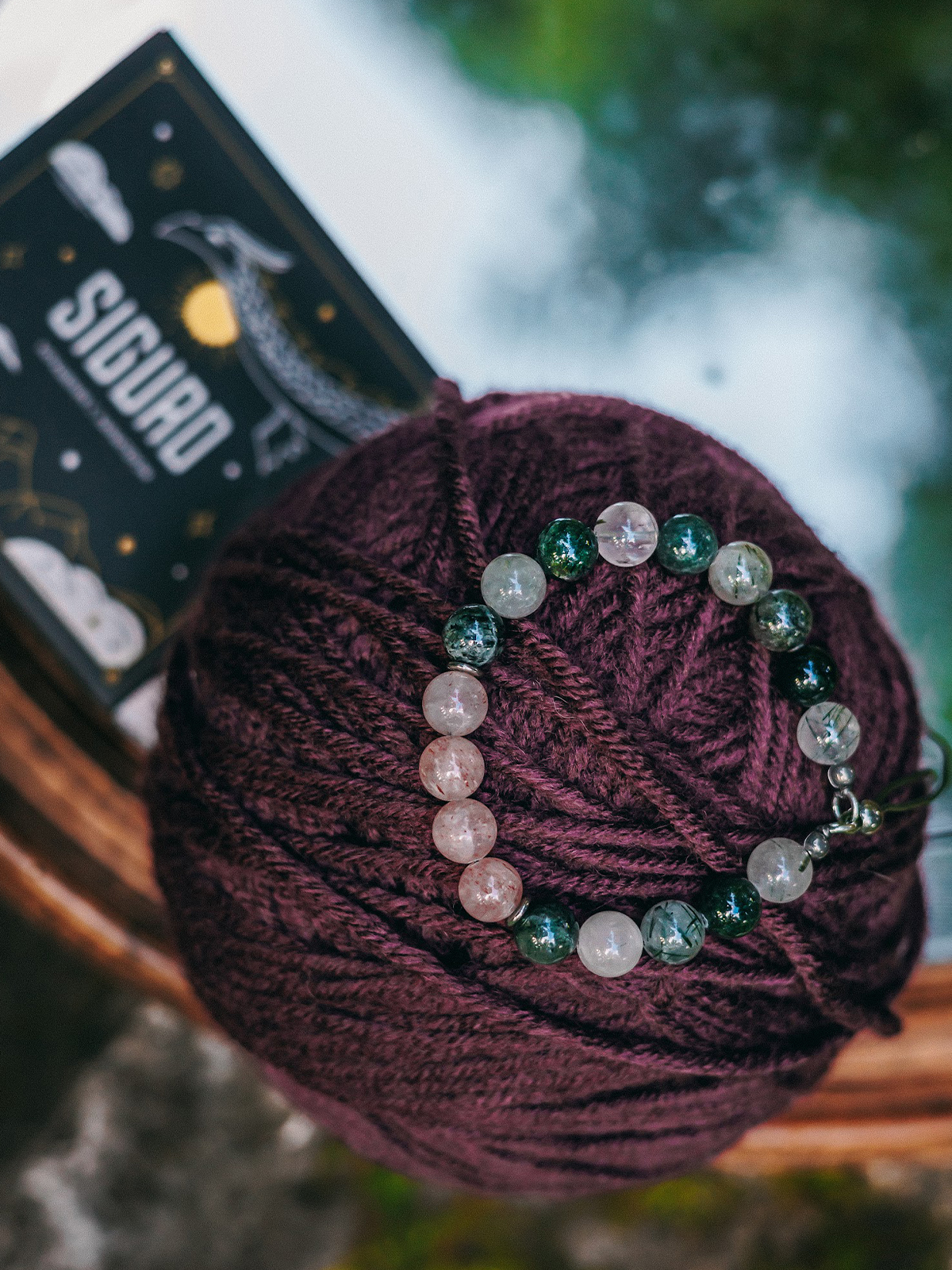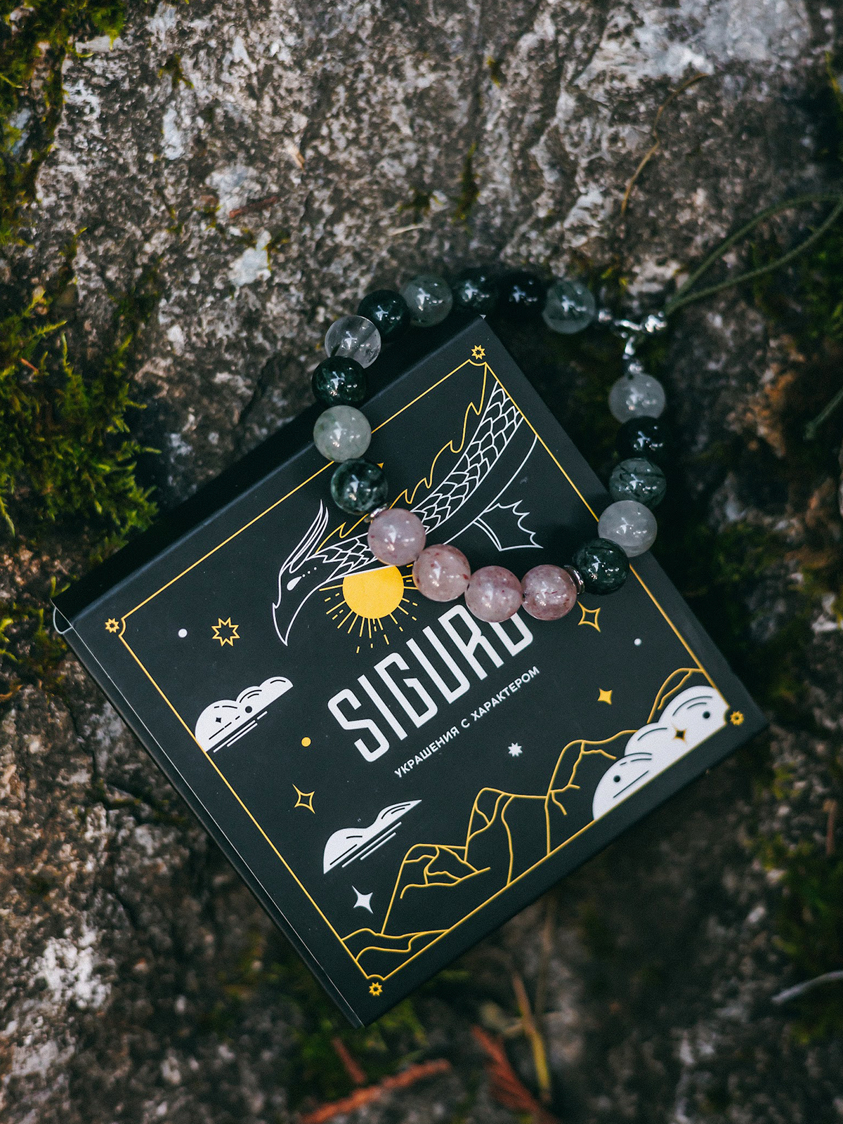 Царь-трава — браслет из амфиболового и клубничного кварца.