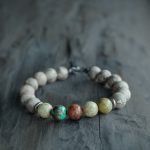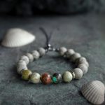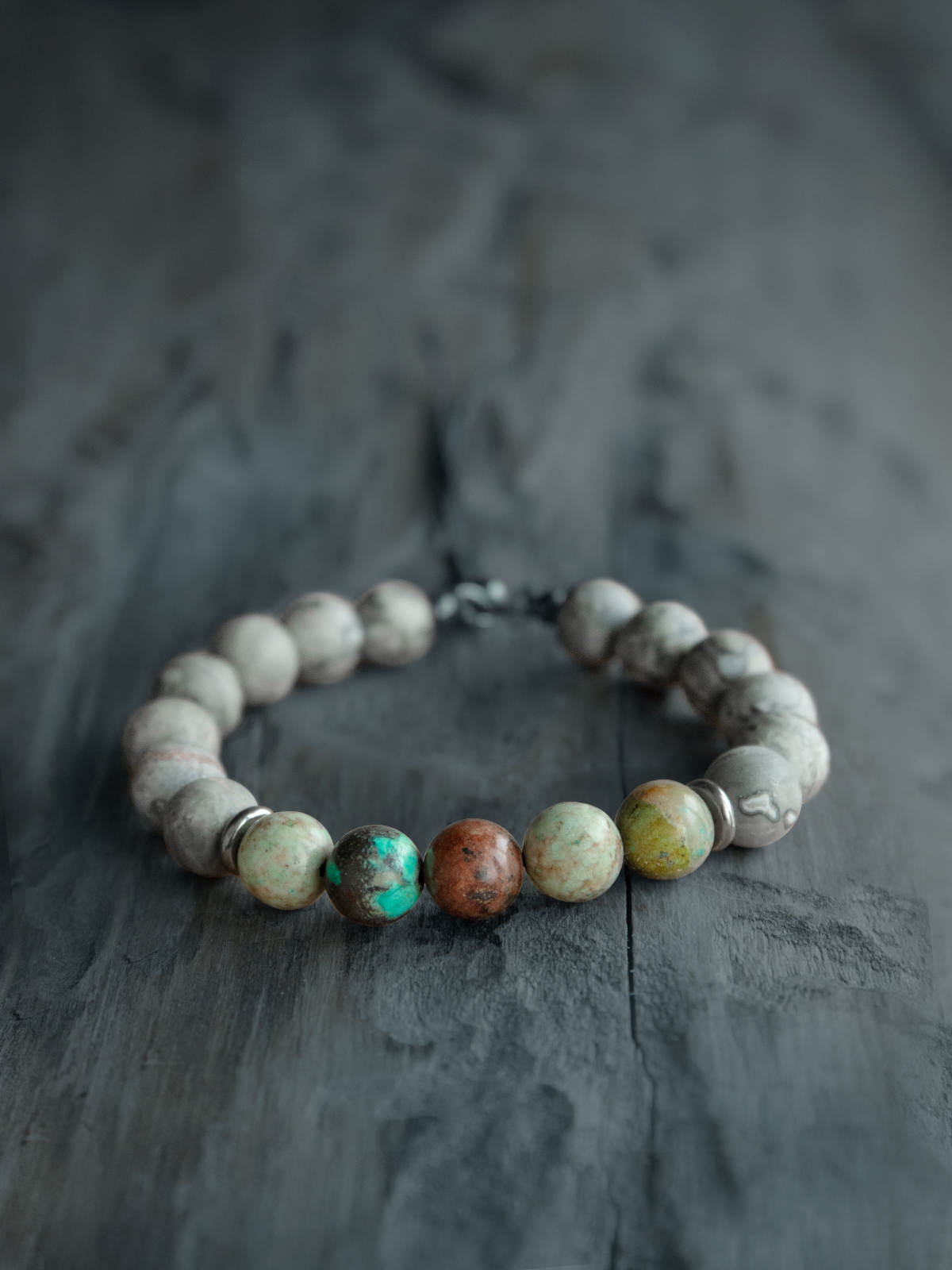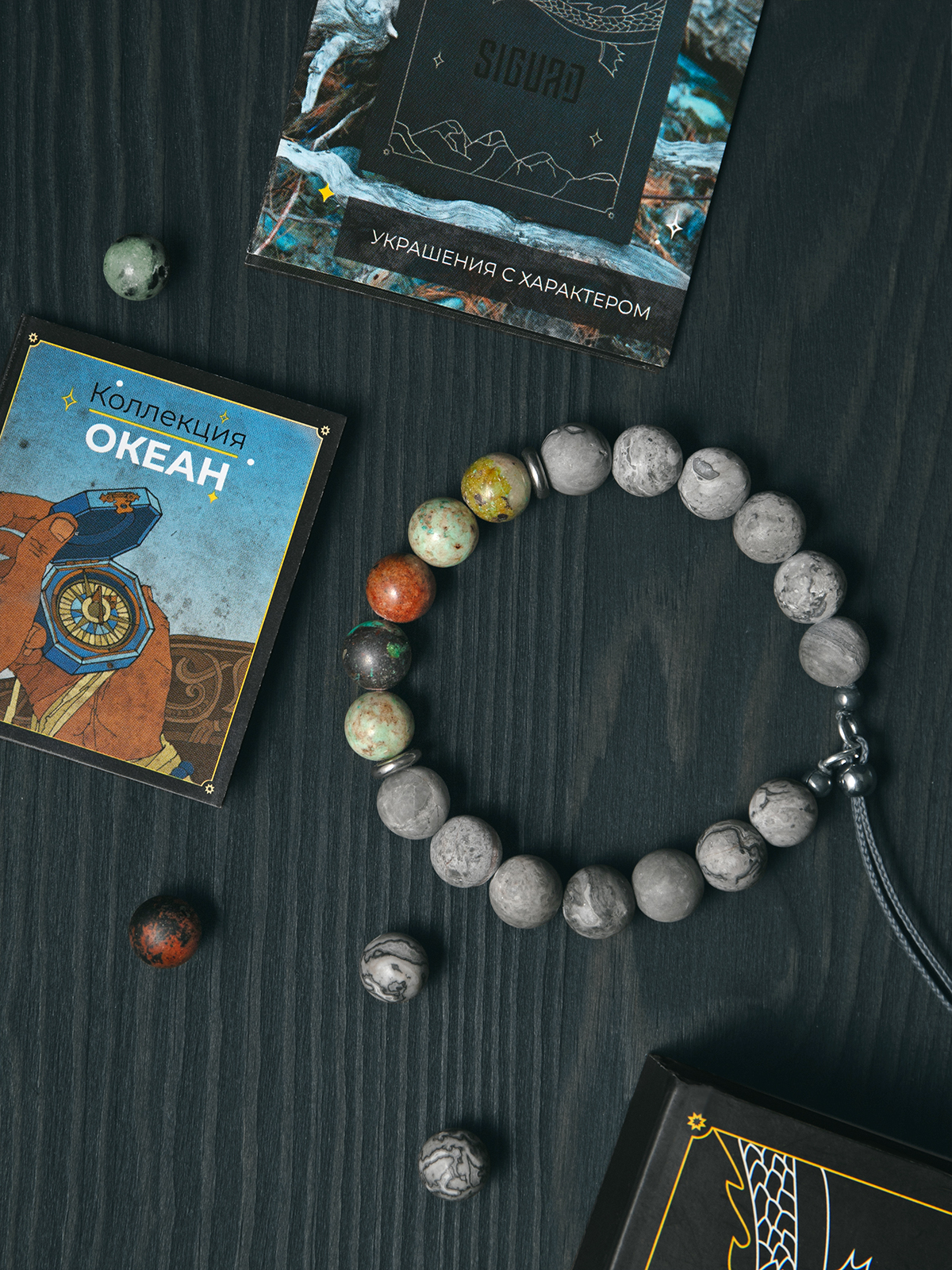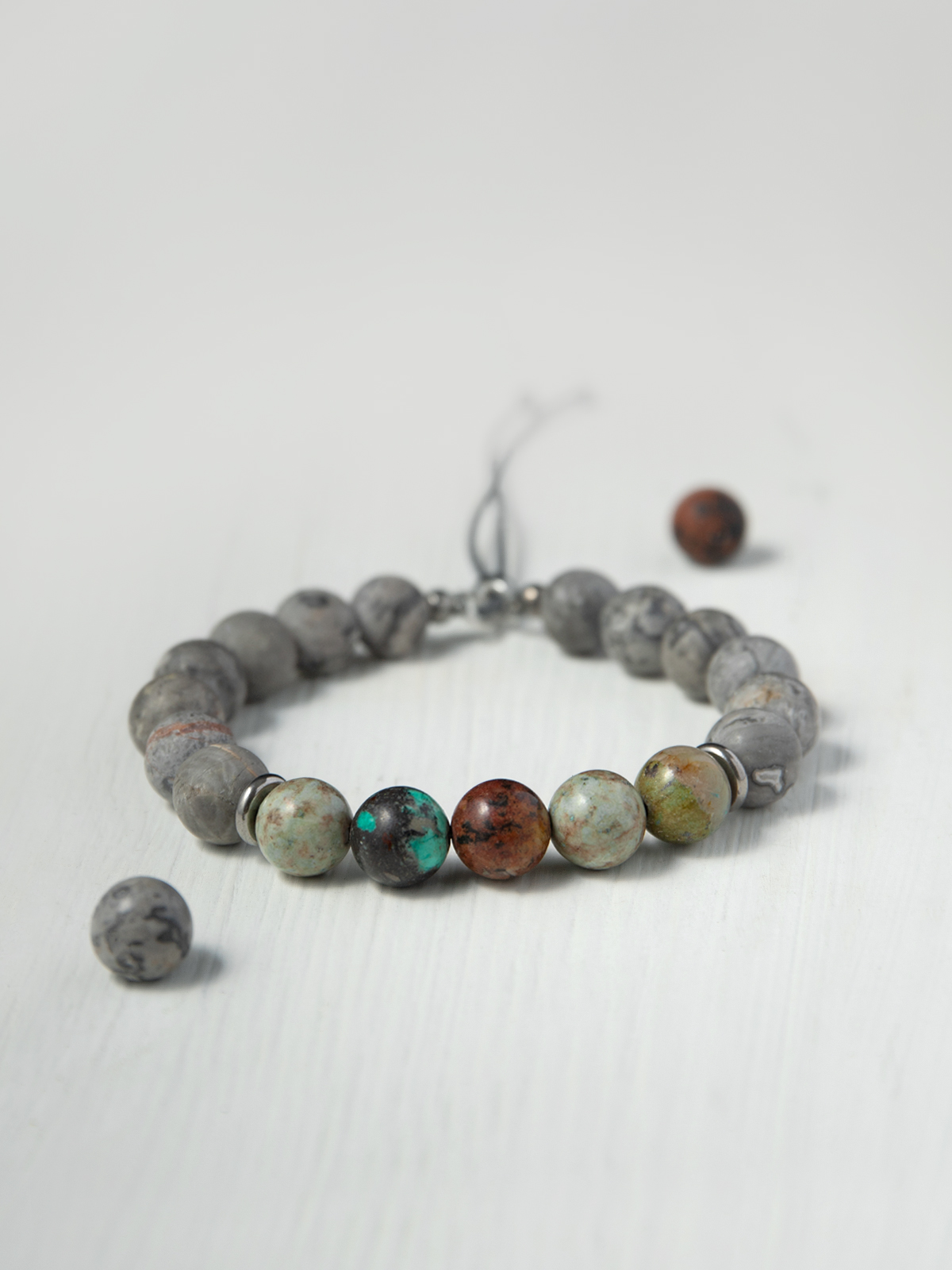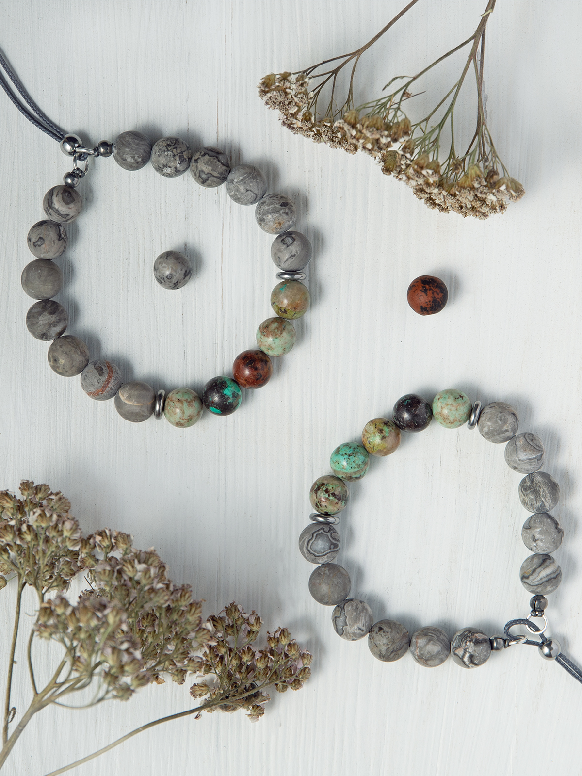 Фьорд — браслет из серой яшмы и хризоколлы в кварце.