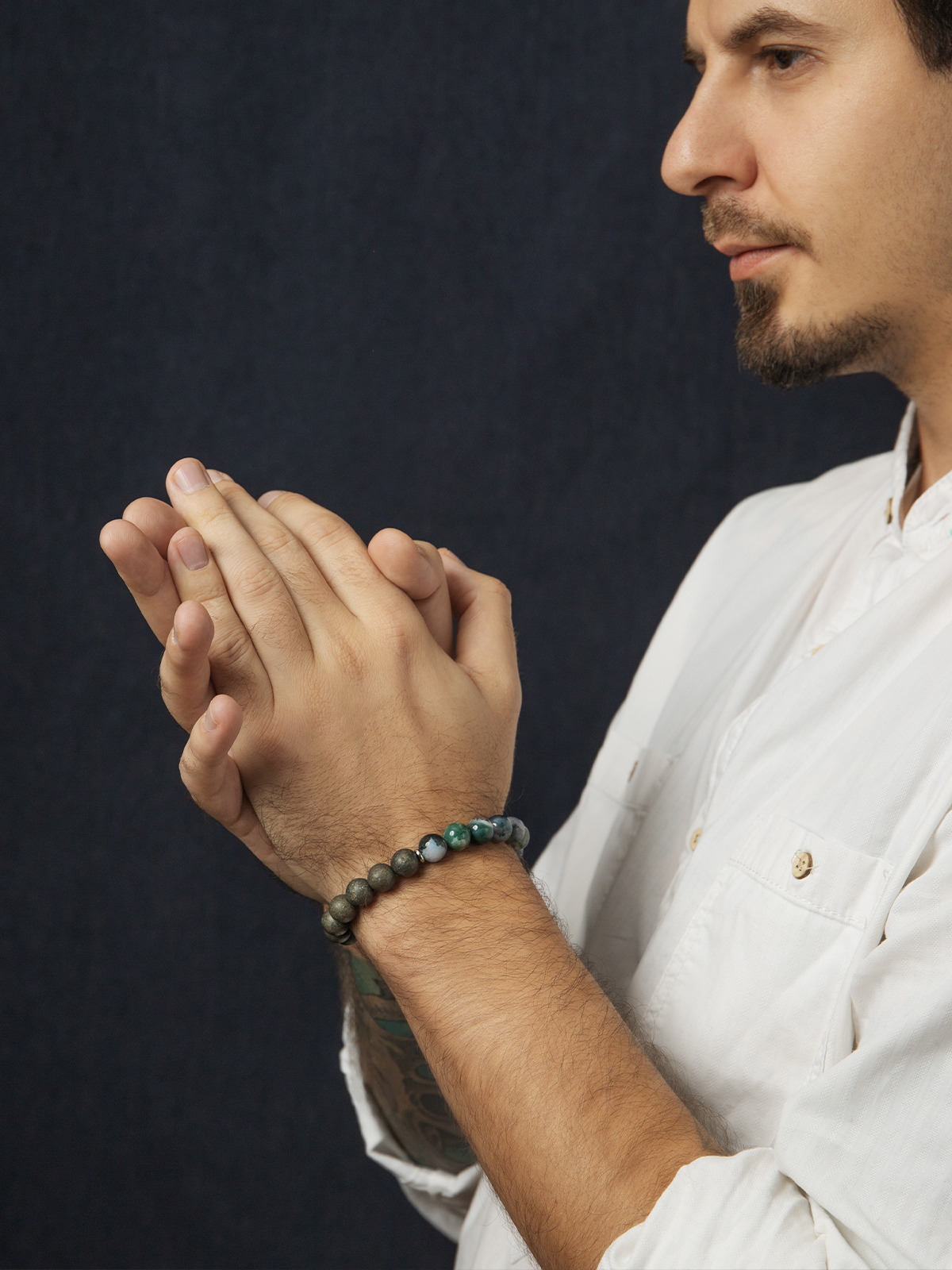 Затяжная регулируемая застежка позволяет гибко подгонять размер браслета под обхват запястья. Чтобы браслет удобно сидел на руке, выберите наиболее подходящий вариант из трех базовых размеров. Цифры соответствуют обхвату запястья в сантиметрах: 15-17,5 см, 18-20,5 см, 21-24 см. Общее количество каменных бусин в размере 15-17,5 - 16 шт., 18-20,5 - 18 шт., 21-24 - 20 шт.