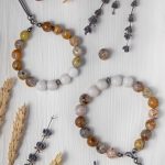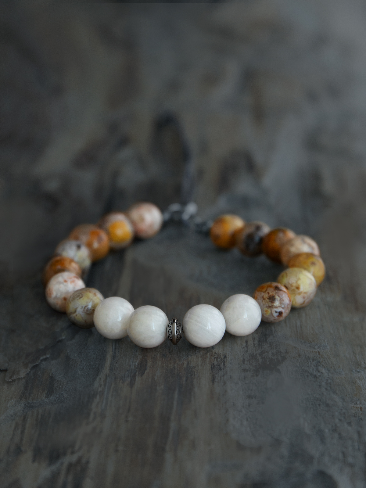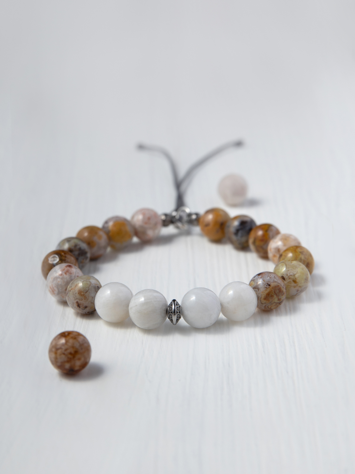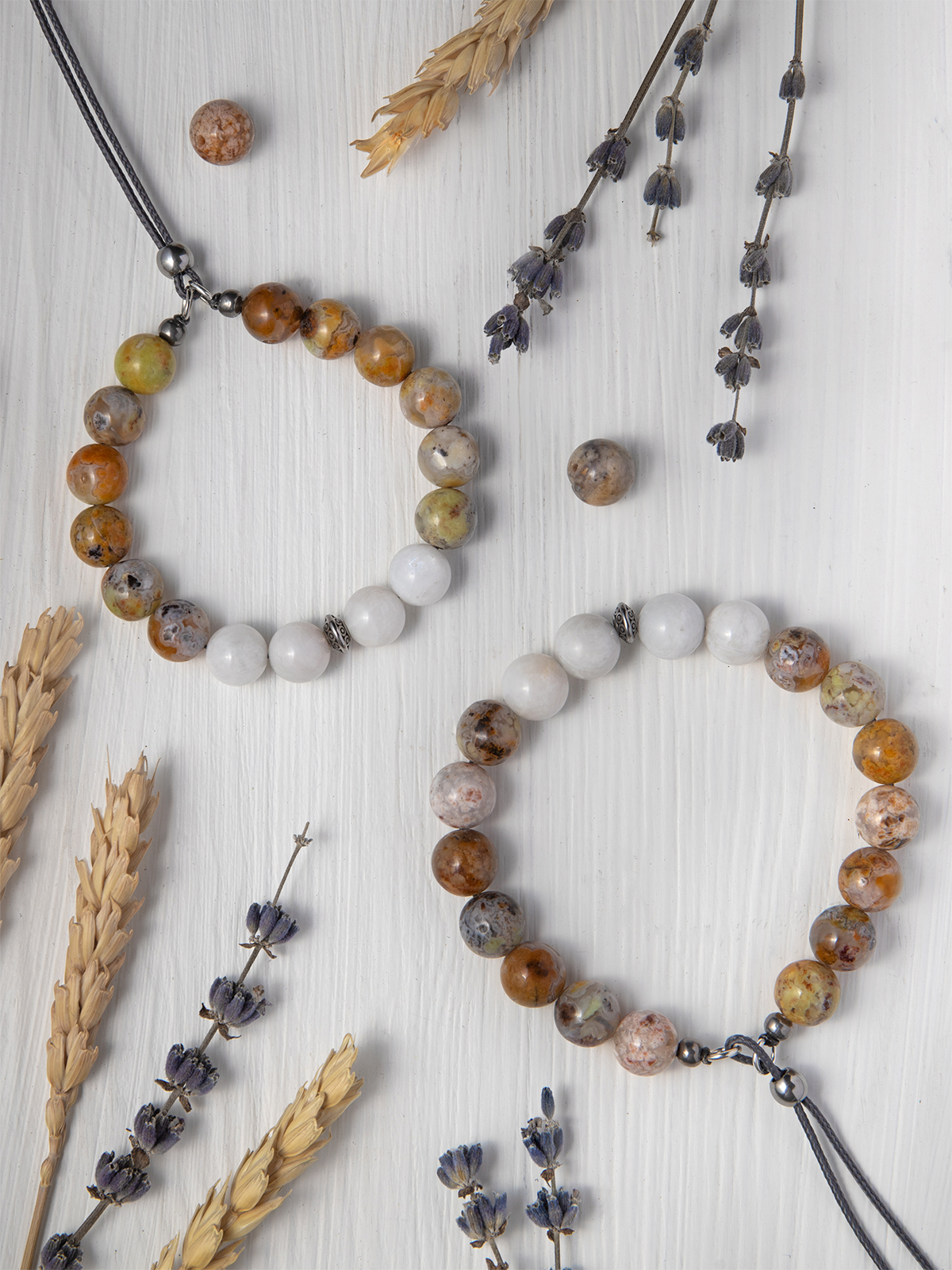 Сарасвати — браслет из лунного камня и цветочного агата.