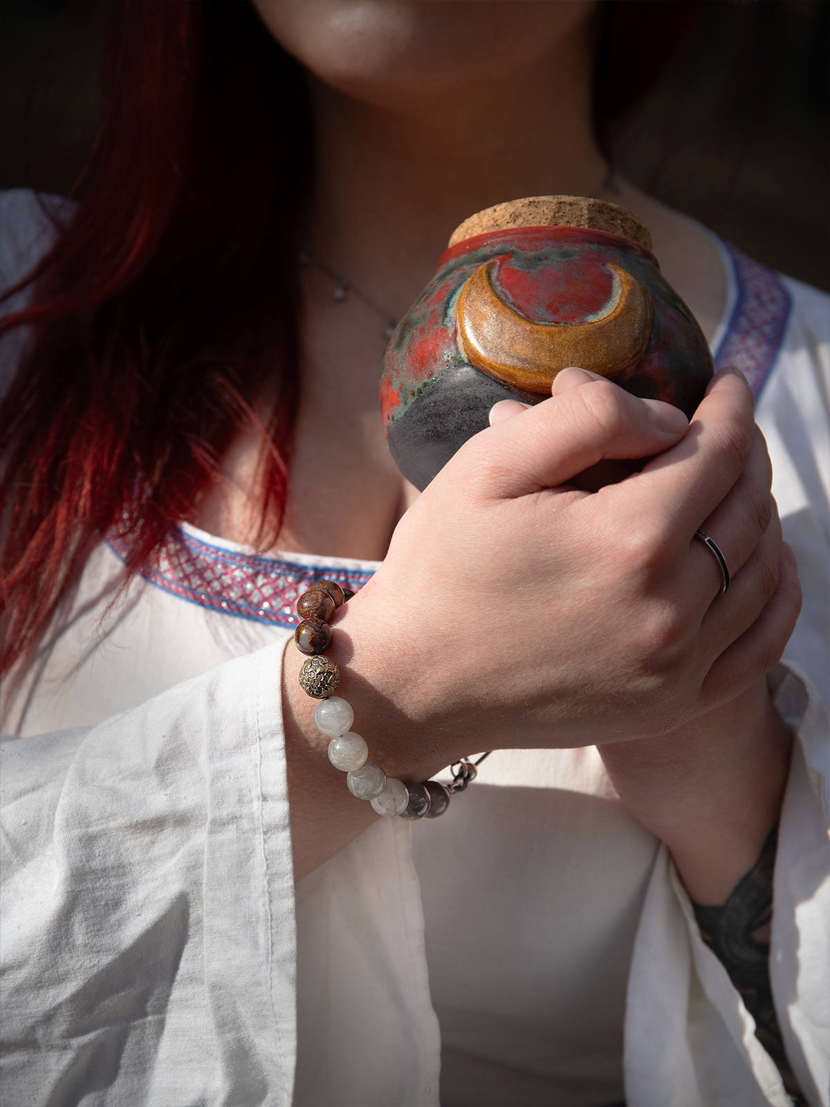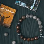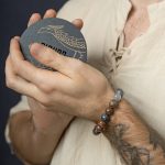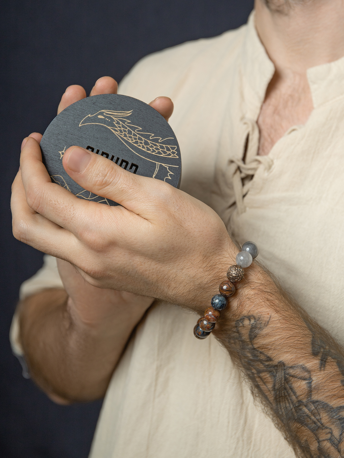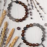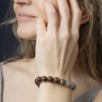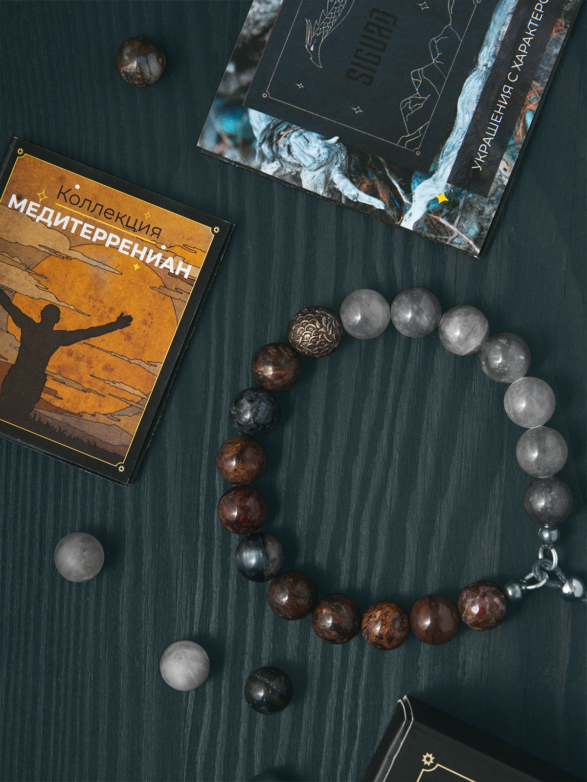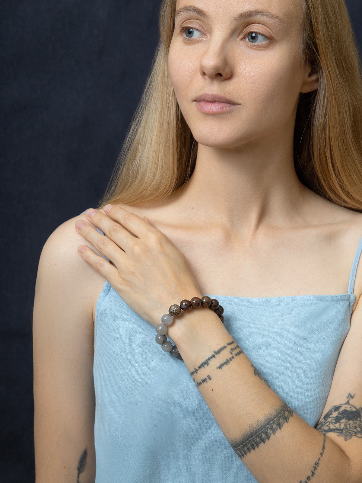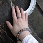 Сфорца — браслет из питерсита и облачного кварца, с бронзовой бусиной.
