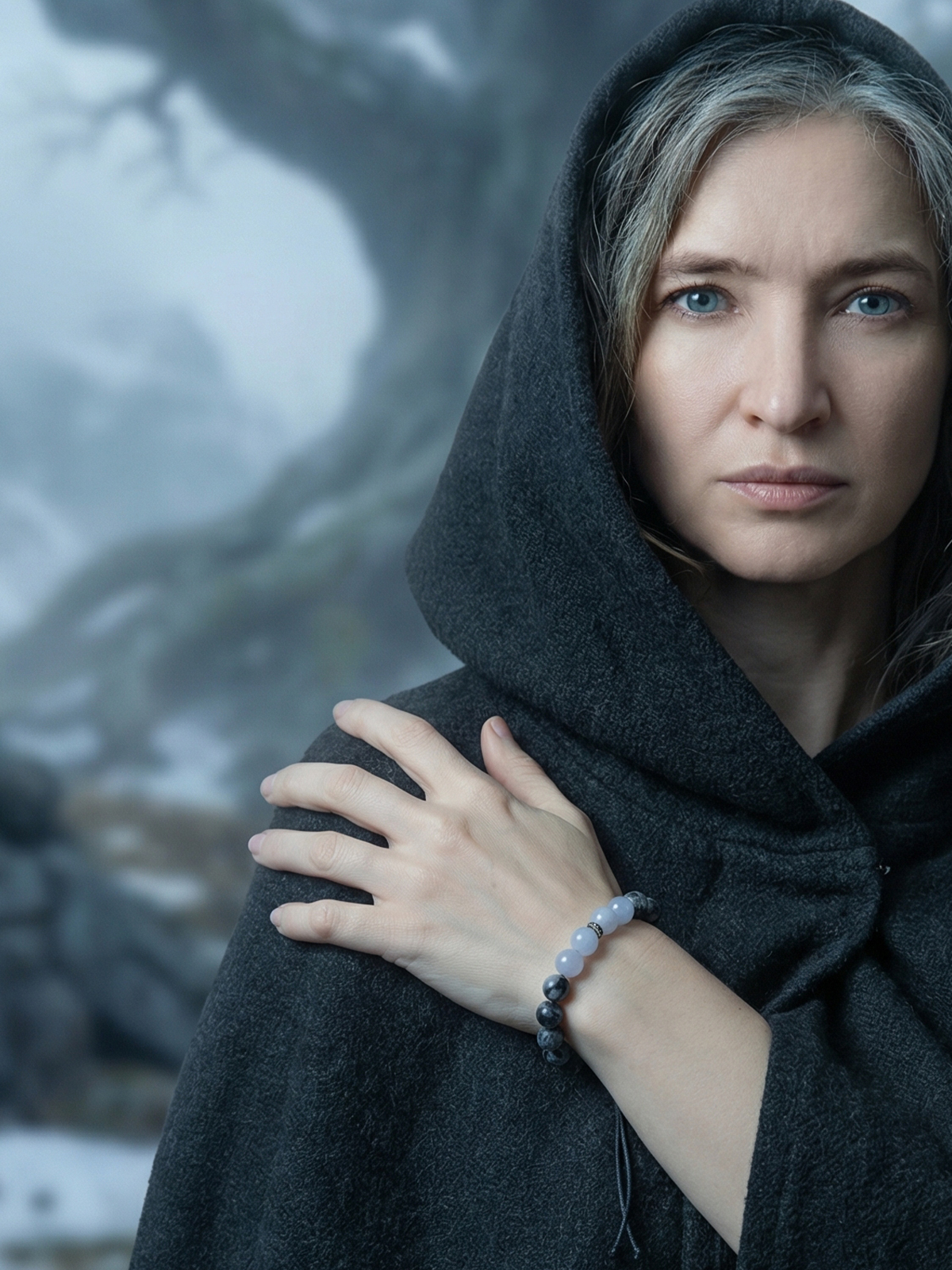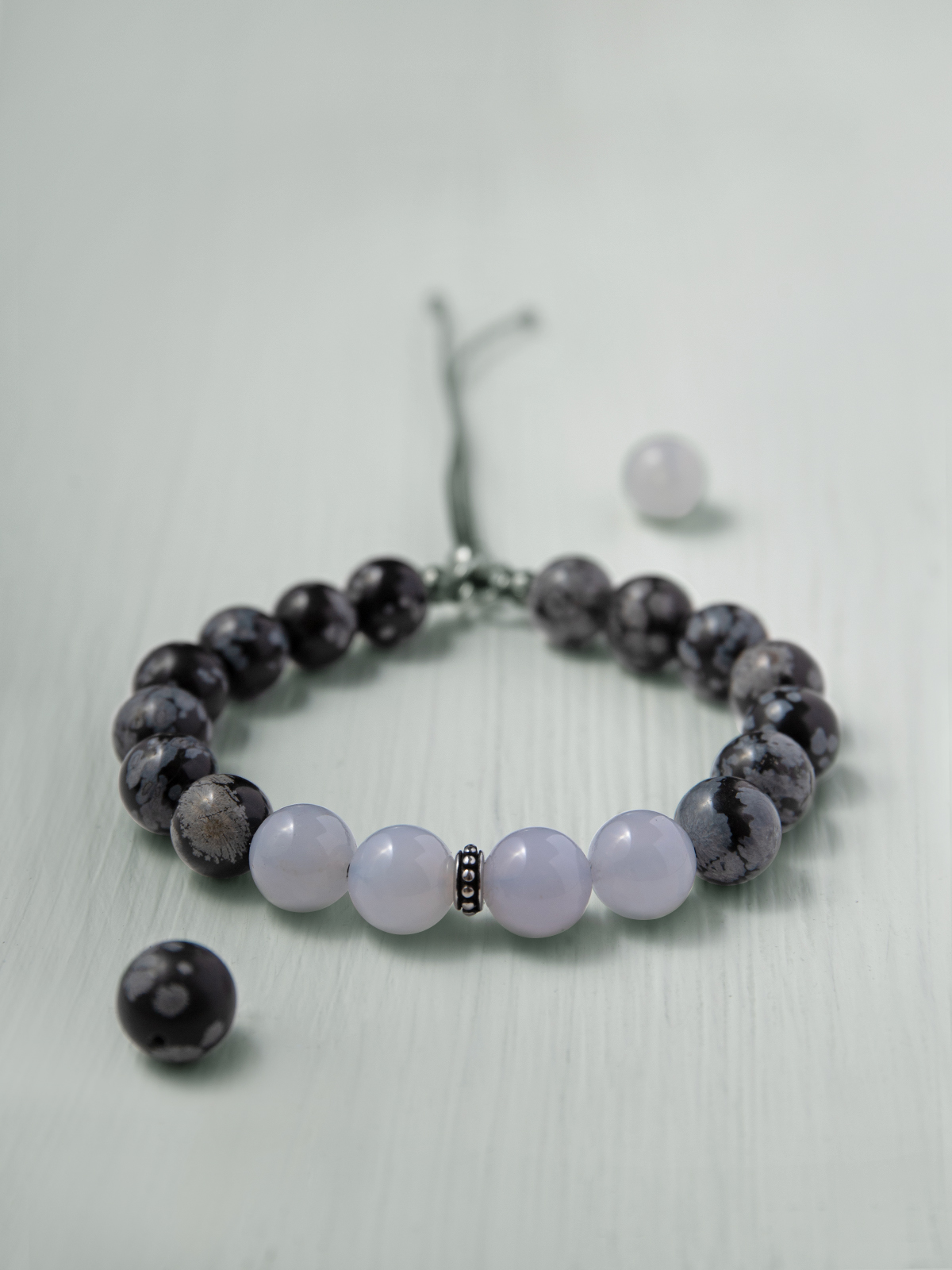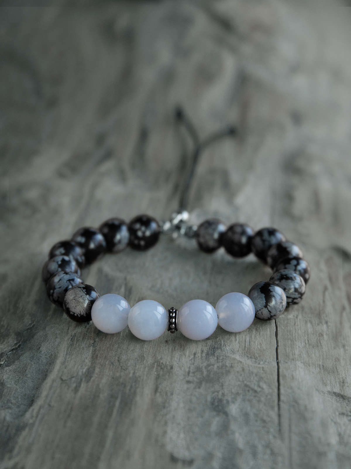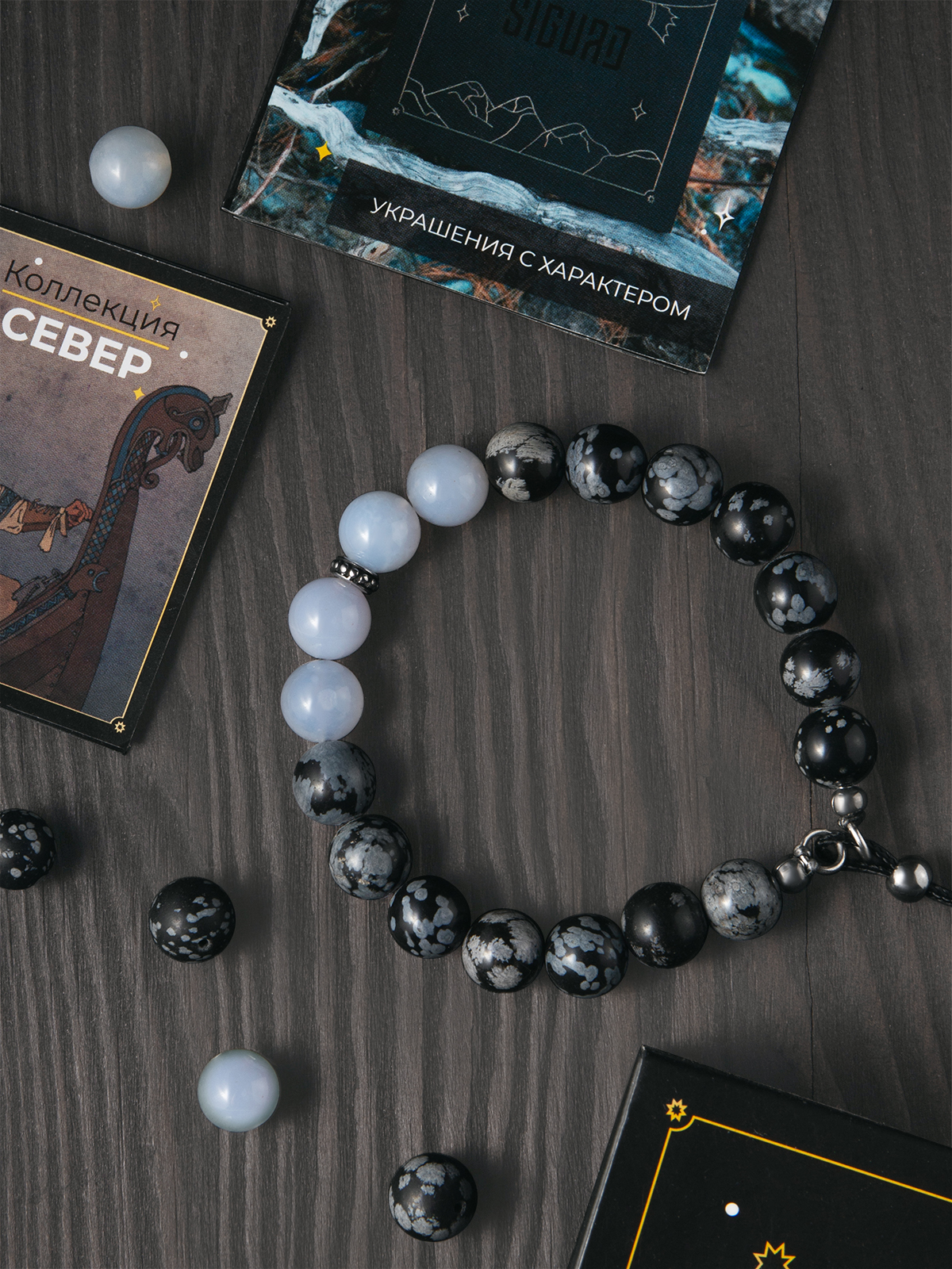 Скульд — браслет из голубого халцедона и снежного обсидиана.