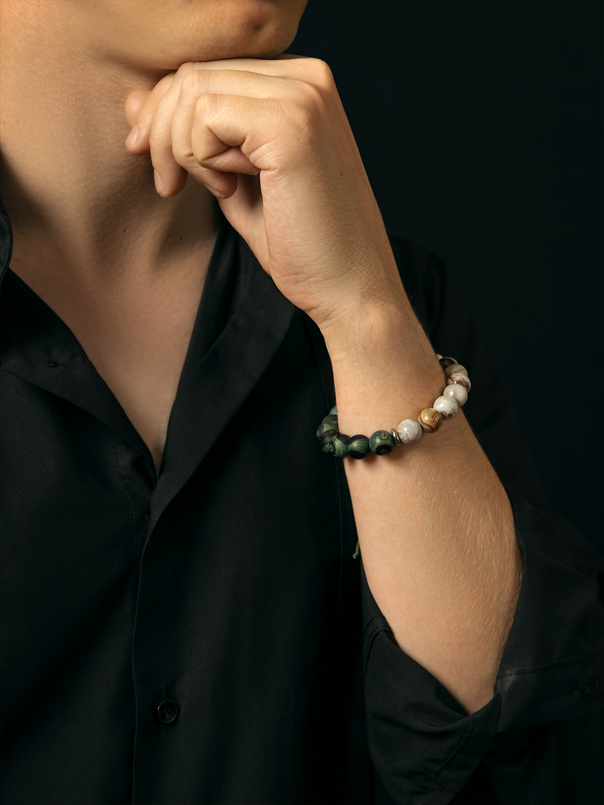 Затяжная регулируемая застежка позволяет гибко подгонять размер браслета под обхват запястья. Чтобы браслет удобно сидел на руке, выберите наиболее подходящий вариант из трех базовых размеров. Цифры соответствуют обхвату запястья в сантиметрах: 15-17,5 см, 18-20,5 см, 21-24 см. Общее количество каменных бусин в размере 15-17,5 - 16 шт., 18-20,5 - 18 шт., 21-24 - 20 шт.