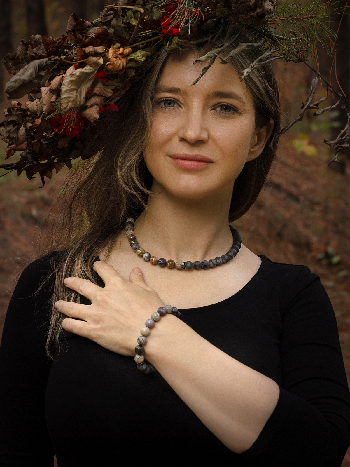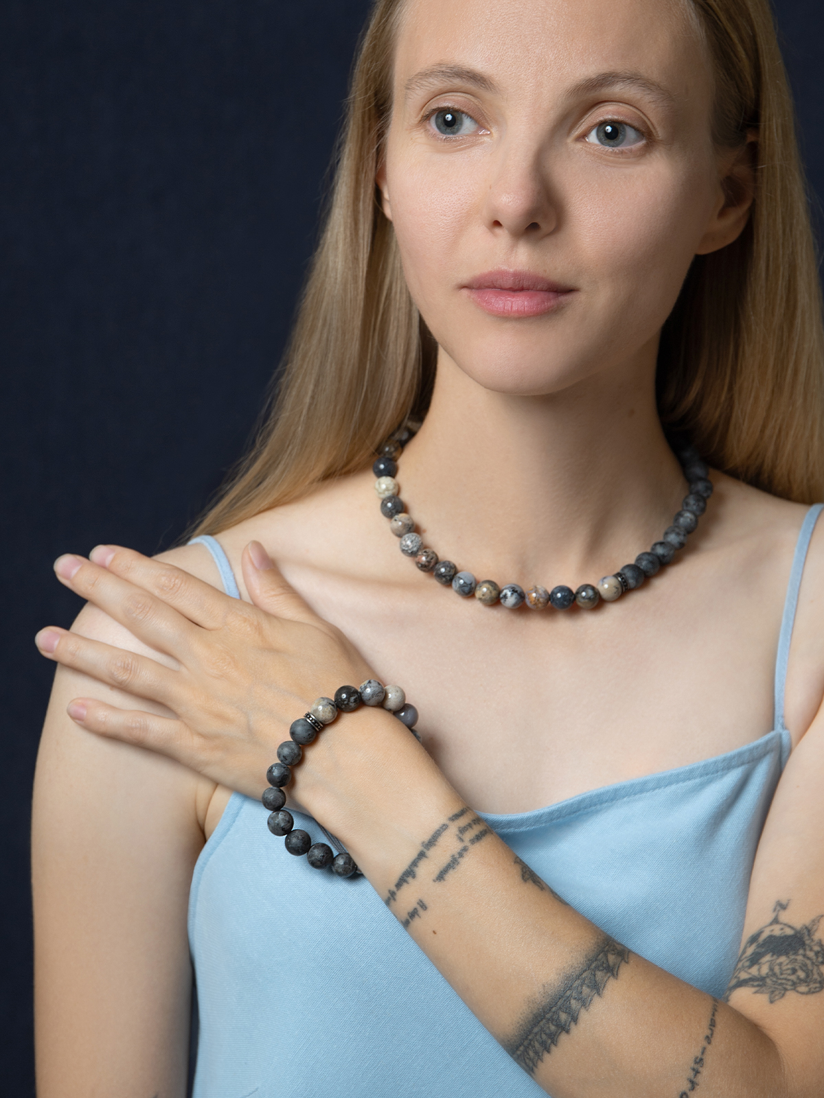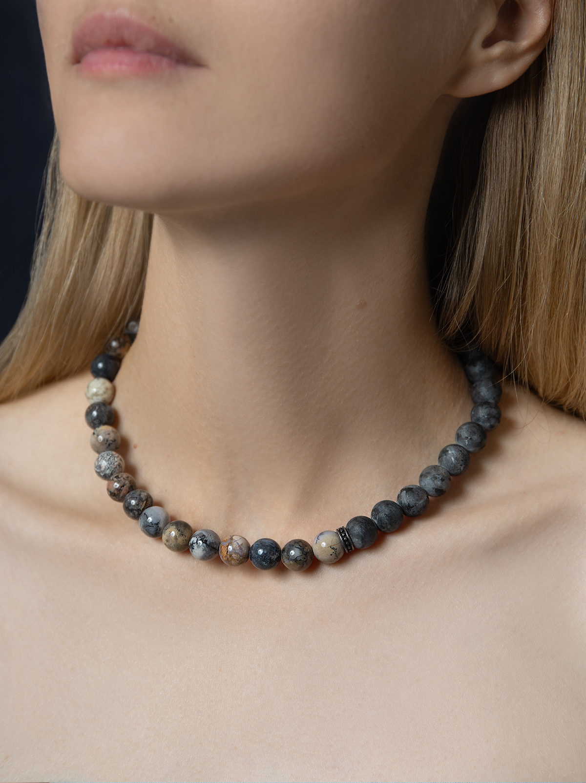 Иван-царевич — чокер из дендритной яшмы и лабрадорита.