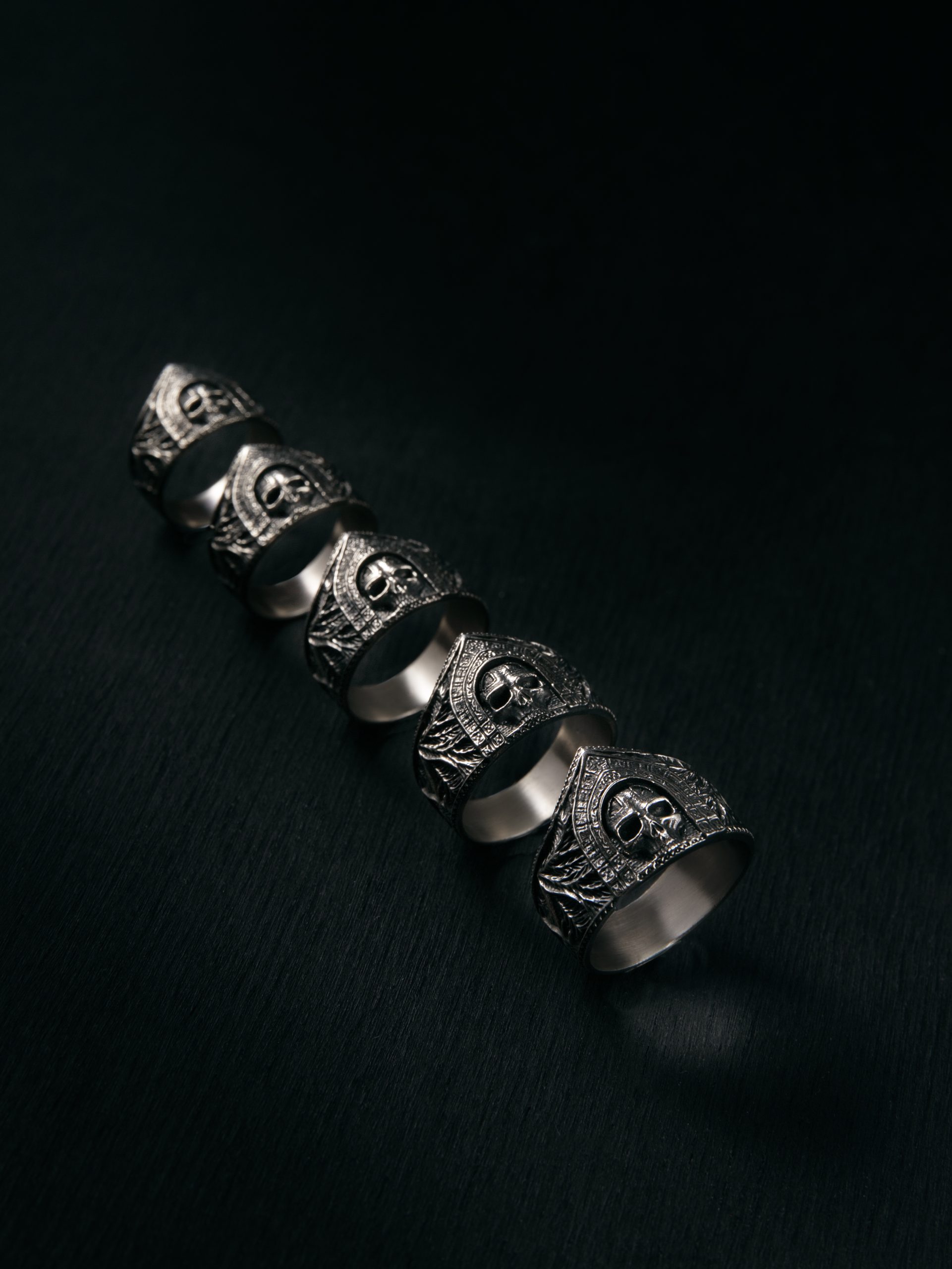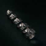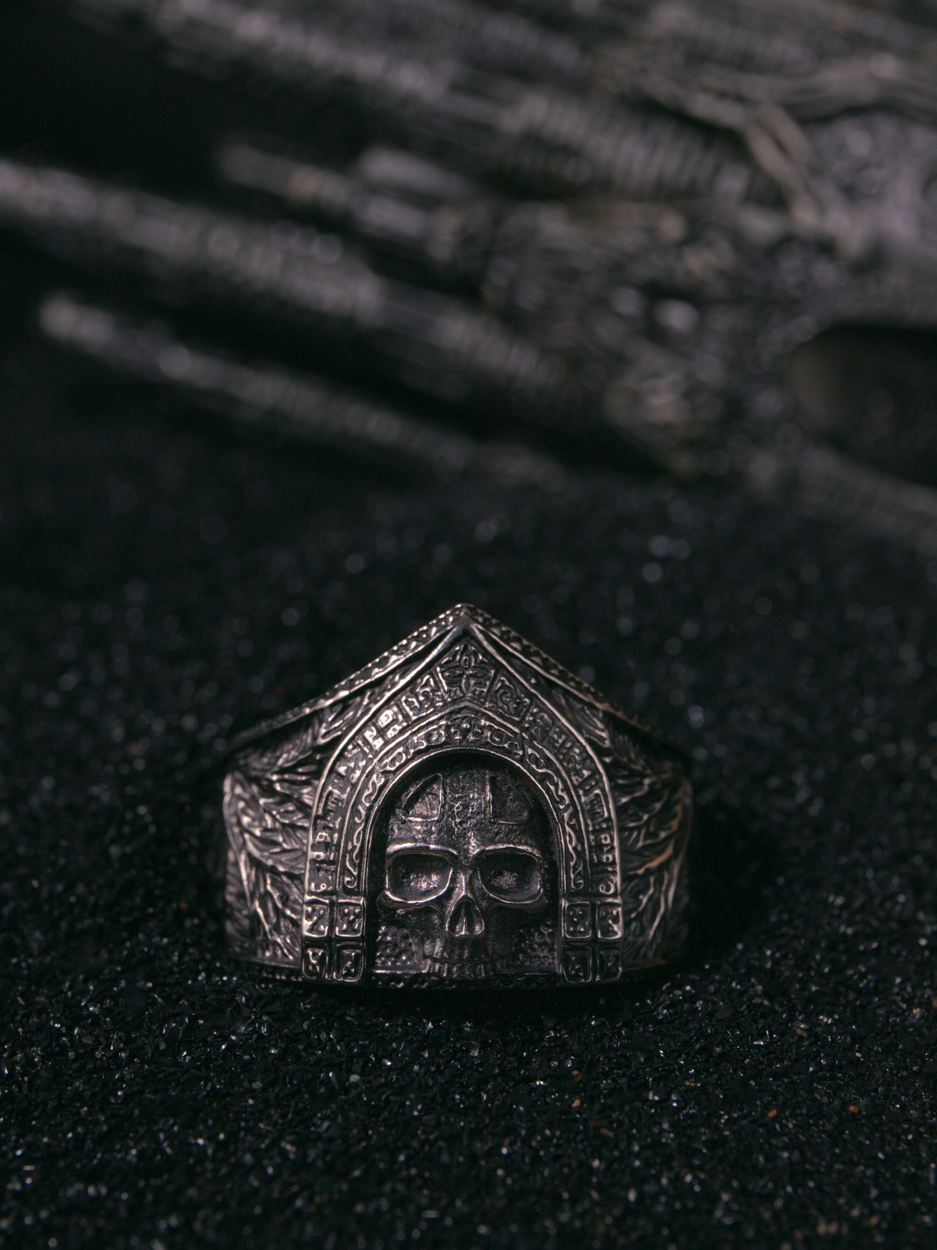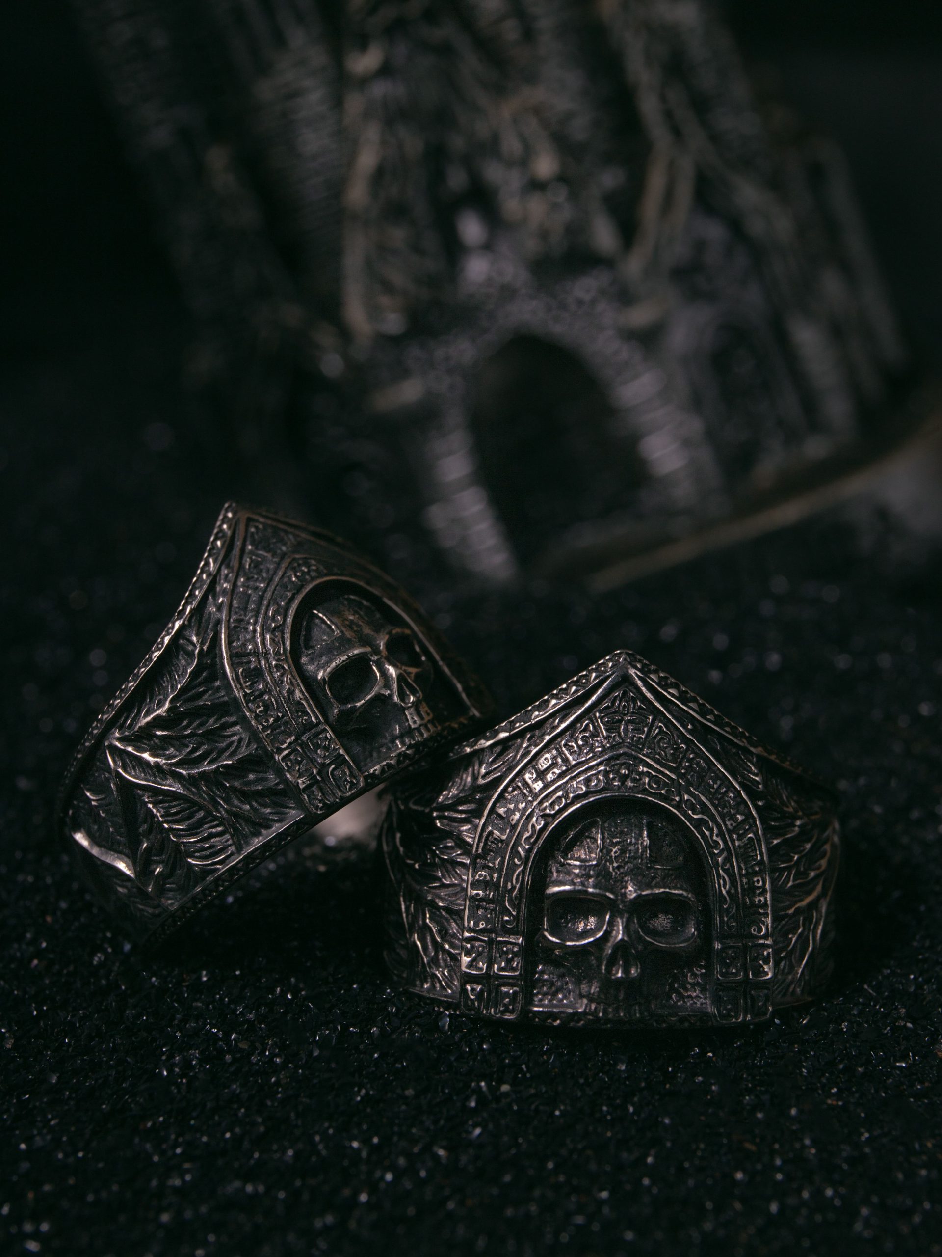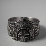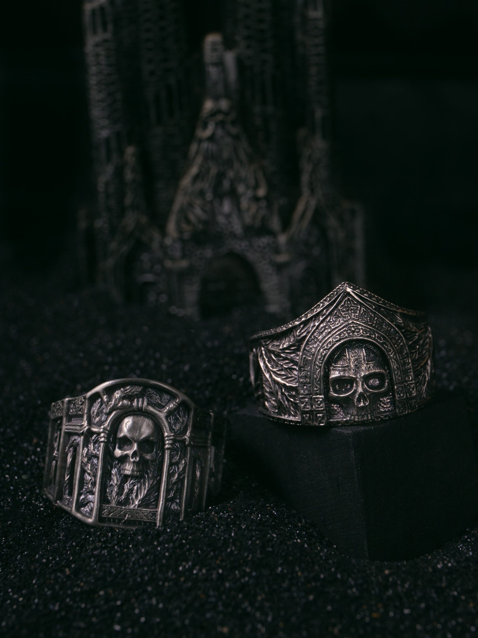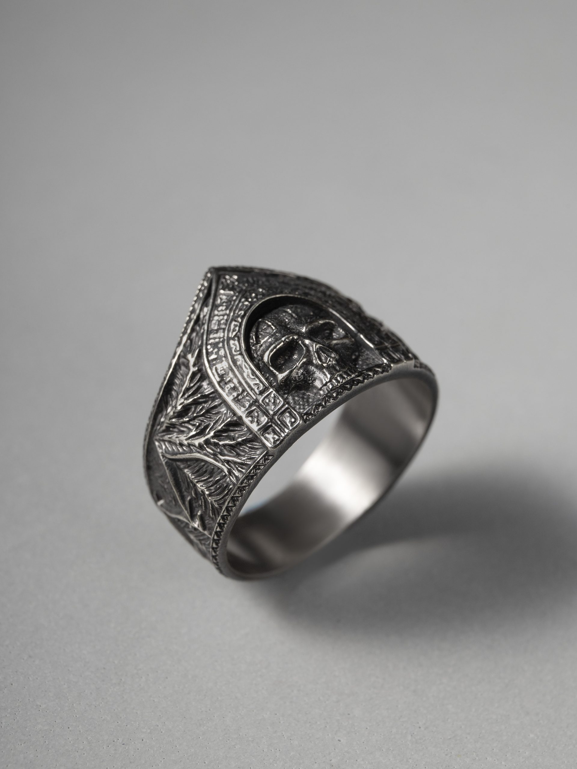Кольцо отлито из нейзильбера — серебристого сплава меди, никеля и цинка. Не ржавеет, но может со временем потемнеть. Чтобы вернуть блеск, можно использовать средства по уходу за серебром, слабокислые растворы (уксус, лимонная кислота) или мягкие абразивы.