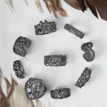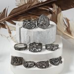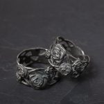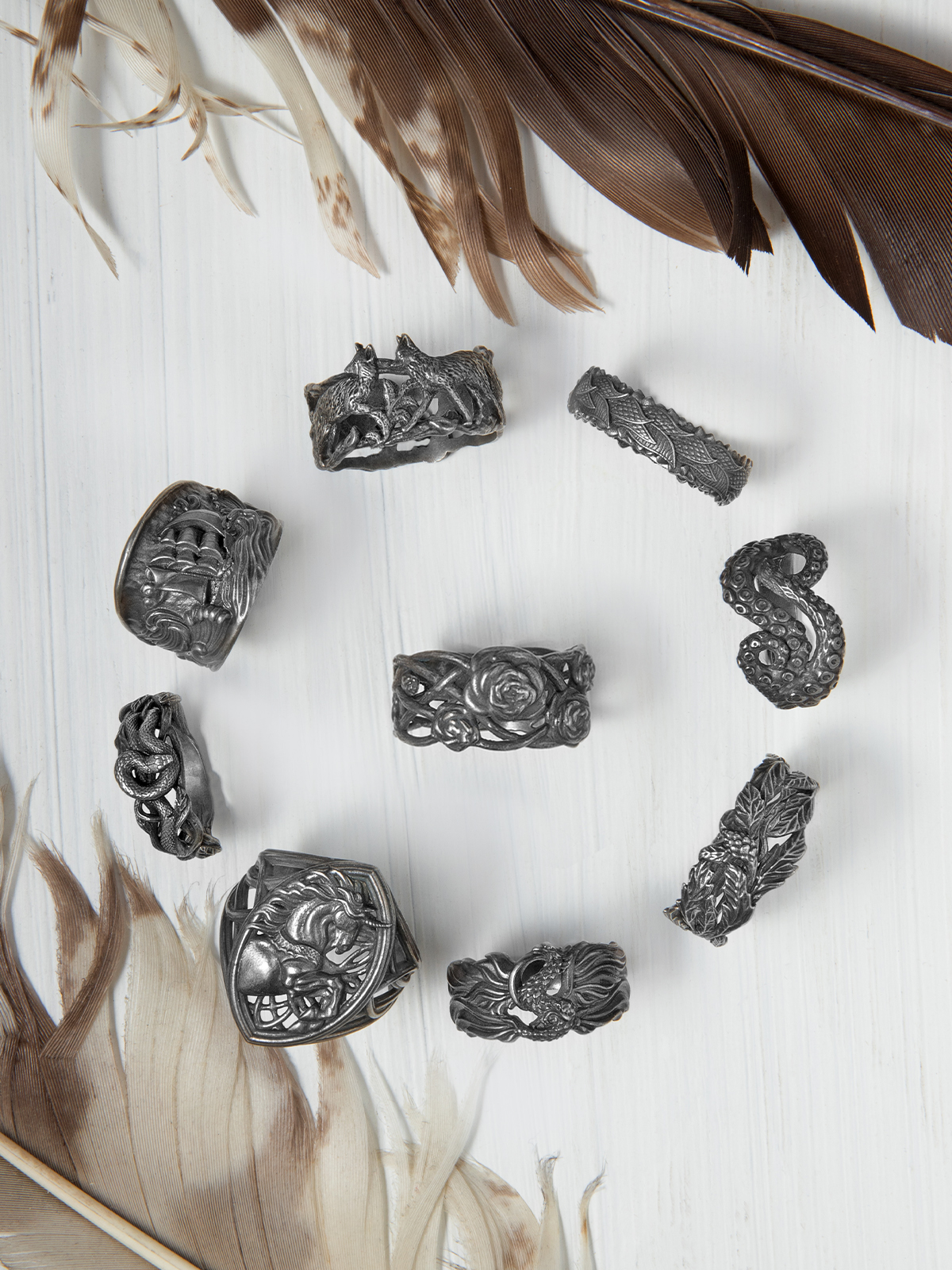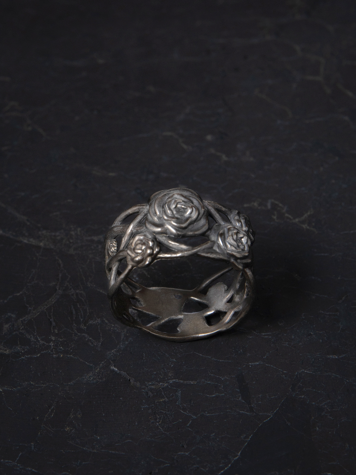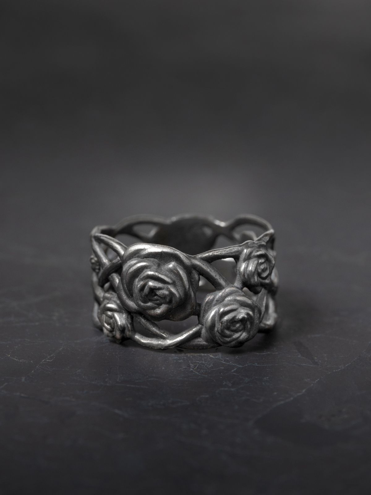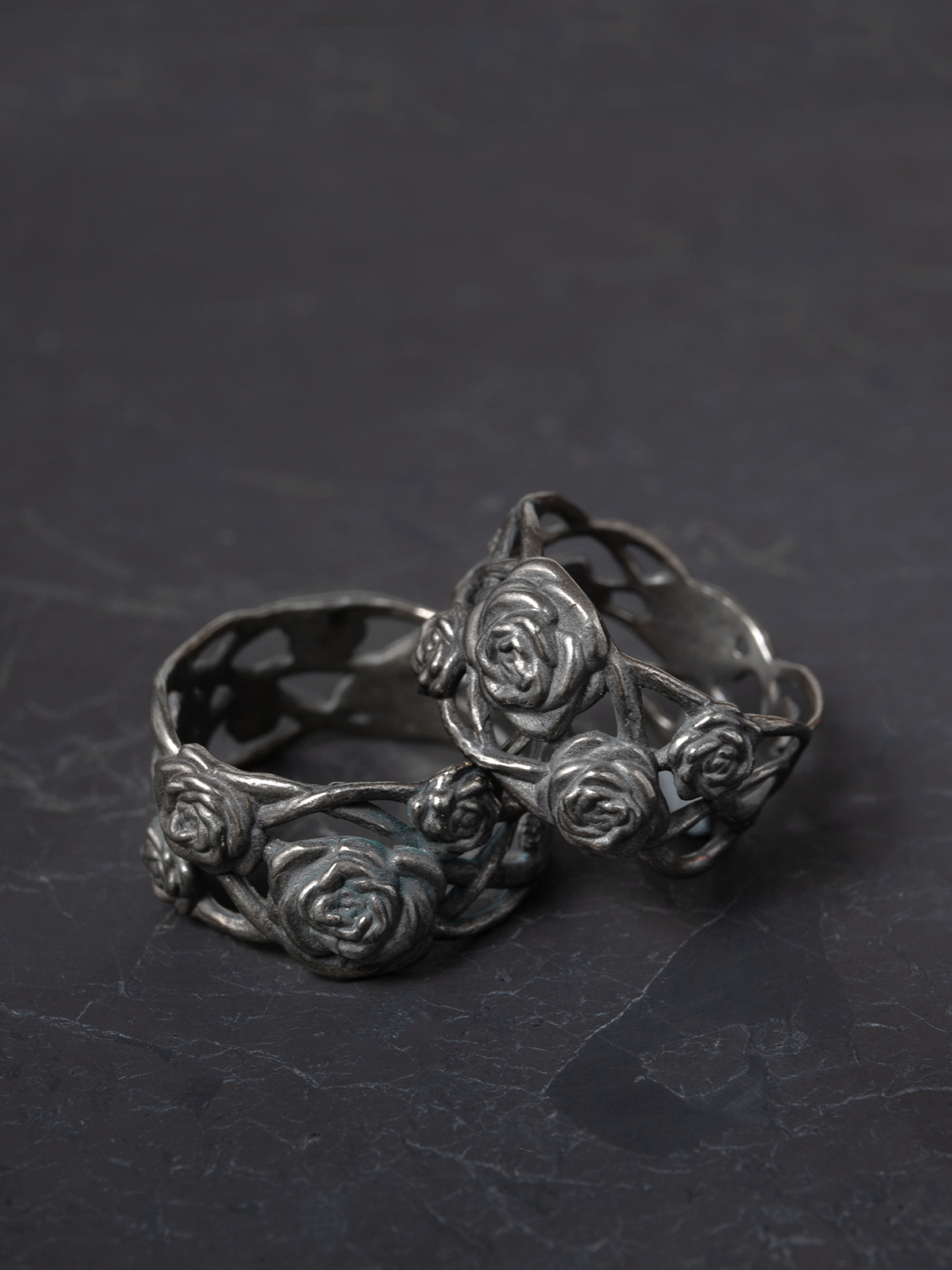 Кольцо отлито из нейзильбера — серебристого сплава меди, никеля и цинка. Не ржавеет, но может со временем потемнеть. Рекомендации по уходу: протирать ворсистой тканью со слабокислым раствором (уксус, лимонная кислота), специальными средствами для ухода за серебром, мягкими абразивами.