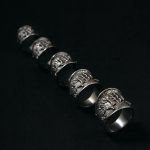 Кольцо отлито из нейзильбера – серебристого сплава меди, никеля и цинка. Не ржавеет, но может со временем потемнеть. Рекомендации по уходу: протирать ворсистой тканью со слабокислым раствором (уксус, лимонная кислота), специальными средствами для ухода за серебром, мягкими абразивами.